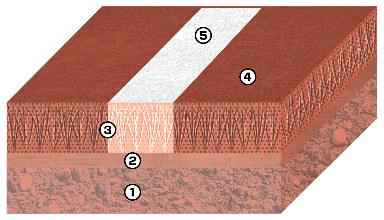 A full depth clay court alternative that is high performance, cost-effective, and low-maintenance. Constructed with a synthetic grass base, ProAussieClay® is available in three colors: Terracotta, Rubico Green, and Rubico Grey.