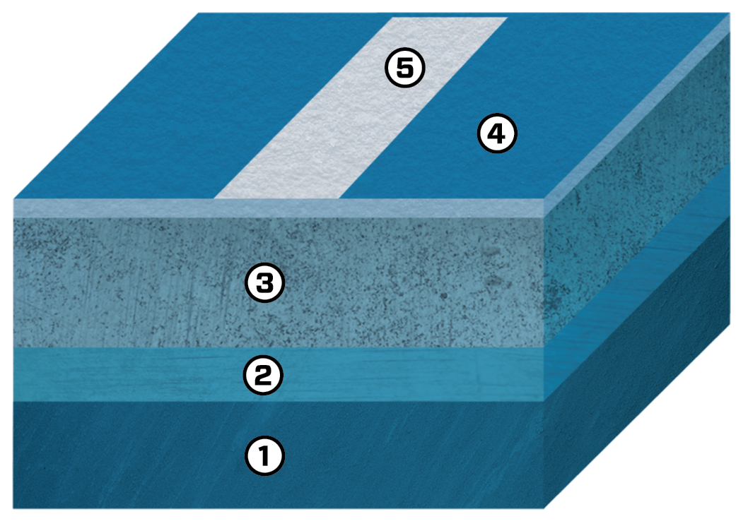 The ProBounce® surface is a monolithic, free floating pavement system which bridges structural cracking while enhancing player comfort with cushion properties. ProBounce® is a cushioned all-weather court surface ideal for construction over asphalt or post tension concrete as well as over a crushed rock base.